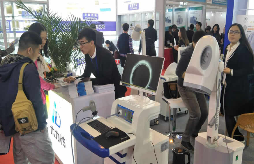 中醫特色康復理療產品---“大力神雀啄灸”依然是此次醫博會公司所有參展產品中最具亮點和吸引眼球的產品之一,產品展位前人頭顫動,眾多國內外醫療同行和經銷商競相了解、咨詢和體驗,工作人員通過專業產品知識的講解和療效體驗以及創新營銷合作方式的介紹,客戶和經銷商們對新品表現出濃厚的興趣,紛紛表示要求引進臨床或共同合作開發該產品市場。
